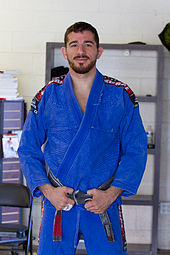 Marcos Torregrosa wearing a black belt with a red bar. In some martial arts, such as Brazilian Jiu Jitsu and Judo, red belts indicate a higher rank than black. In some cases, a solid red belt is reserved for the founder of the art, and in others, higher degrees of black belts are shown by red stripes.