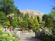 The Happy Valley, a former quarry, was the gift of Lord Mostyn to the town in celebration of the Golden Jubilee of Queen Victoria in 1887. The area was landscaped and developed as gardens, two miniature golf courses, a putting green, a popular open air theatre and extensive lawns. The ceremonies connected with the Welsh National Eisteddfod were held there in 1896 and again in 1963. In June 1969, The Great Orme Cabin Lift, a modern alternative to the tramway, was opened with its base station adjacent to the open air theatre. The distance to the summit is just over one mile (1.6 km) and the four-seater cabins travel at six m.p.h. on a continuous steel cable over two miles (3 km) long. It is the longest single stage cabin lift in Britain and the longest span between pylons is over 1,000 feet (300 m). The popularity of the 'Happy Valley Entertainers' open air theatre having declined, the theatre closed in 1985 and likewise the two miniature golf courses closed and were converted in 1987 to create a 280 metre artificial ski slope and toboggan run. The gardens were extensively restored as part of the resort's millennium celebrations and remain a major attraction.