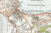 At Nant-y-Gamar road, The Parade becomes Colwyn Road with the fields of Bodafon Hall Farm on the landward side but with the promenade continuing until it ends in a large paddling pool for children and finally the Craigside residential development on the lower slopes of the Little Orme.