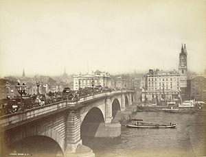 In 1896 the bridge was the busiest point in London, and one of its most congested; 8,000 pedestrians and 900 vehicles crossed every hour. It was widened by 13 feet, using granite corbels; but subsequent surveys showed that the bridge was sinking an inch (about 2.5 cm) every eight years; and by 1924, the east side had sunk some three to four inches (about 9 cm) lower than the west side. The bridge would have to be removed and replaced.