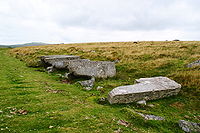 The London Bridge that was rebuilt at Lake Havasu City consists of a frame with stones from Rennie's London Bridge used as cladding. The cladding stones used are 150 to 200 millimetres (6 to 8 inches) thick. Some of the stones from the bridge were left behind at Merrivale Quarry at Princetown in Devon. When Merrivale Quarry was abandoned and flooded in 2003, some of the remaining stones were sold in an online auction.