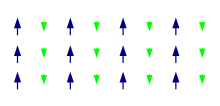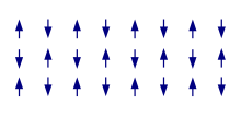 Like ferromagnetism, ferrimagnets retain their magnetization in the absence of a field. However, like antiferromagnets, neighboring pairs of electron spins like to point in opposite directions. These two properties are not contradictory, because in the optimal geometrical arrangement, there is more magnetic moment from the sublattice of electrons that point in one direction, than from the sublattice that points in the opposite direction.