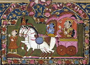 Krishna, Arjuna at Kurukshetra, 18–19th century painting.