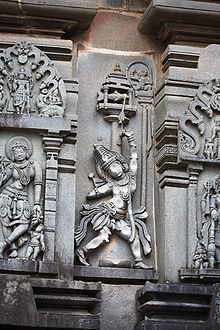 Arjuna piercing the eye of the fish as depicted in Chennakesava Temple built by Hoysala Empire.