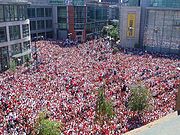 Exchange Square during a BBC Big Screen showing of a FIFA World Cup football game.