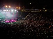 Manchester’s main pop music venue is the Manchester Evening News Arena, situated next to Victoria station. It seats over 21,000, is the largest arena of its type in Europe, and has been voted International Venue of the Year. In terms of concert goers, it is the busiest indoor arena in the world ahead of Madison Square Garden in New York and the O2 Arena in London, the second and third busiest respectively. Other major venues include the Manchester Apollo and the Manchester Academy. Smaller venues are the Band on the Wall Roadhouse, the Night and Day Cafe, the Ruby Lounge, and The Deaf Institute.