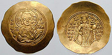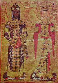 ![]() Manuscript miniature of Manuel I (part of double portrait with Maria of Antioch, Vatican Library, Rome) |