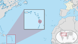 Martinique (French pronunciation: ​ [maʁtinik]) is an island in the eastern Caribbean Sea, with a land area of 1,128 km2 (436 sq mi). Like Guadeloupe, it is an overseas region of France, consisting of a single overseas department. To the northwest lies Dominica, to the south St Lucia, and to the southeast Barbados. As with the other overseas departments, Martinique is one of the twenty-six regions of France (being an overseas region) and an integral part of the Republic. The first European to encounter the island was Christopher Columbus in 1502.