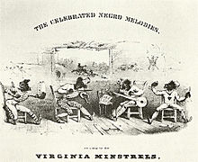 Early minstrel shows lampooned the assumed stupidity of black people. Detail from cover of The Celebrated Negro Melodies, as Sung by the Virginia Minstrels, 1843