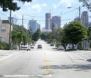 All streets and avenues in Miami-Dade County follow the Miami Grid, with a few exceptions, most notably Coral Gables, Hialeah, and Miami Beach. Some neighborhoods, such as The Roads, is thusly named because its streets run off the Miami Grid in a 45-degree angle, and therefore all named 'roads'.