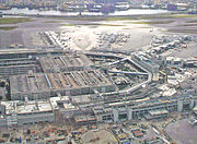 Miami International Airport, located in an unincorporated area in the county, serves as the primary international airport of the Miami Area. One of the busiest international airports in the world, Miami International Airport caters to over 35 million passengers a year. Identifiable locally, as well as several worldwide authorities, as MIA or KMIA, the airport is a major hub and the single largest international gateway for American Airlines, the world's second-largest passenger air carrier. Miami International is the busiest airport in Florida, and is the United States' second-largest international port of entry for foreign air passengers behind New York's John F. Kennedy International Airport, and is the seventh-largest such gateway in the world. The airport's extensive international route network includes non-stop flights to over seventy international cities in North and South America, Europe, Asia, and the Middle East.