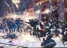 Benedict Arnold's column is shattered in fierce street fighting during the Battle of Quebec.