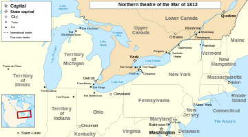 Forts and cities during the War of 1812 in the United States and The Canadas ( Upper Canada & Lower Canada) in the Great Lakes theatre