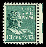 Millard Fillmore (January 7, 1800 – March 8, 1874) was the 13th President of the United States (1850–1853) and the last member of the Whig Party to hold the office of president. As Zachary Taylor's Vice President, he assumed the presidency after Taylor's death.