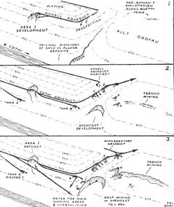 The methods had been developed by the Romans in Spain in 25 AD to exploit large alluvial gold deposits, the largest site being at Las Medulas, where seven long aqueducts were built to tap local rivers and to sluice the deposits. Spain was one of the most important mining regions, but all regions of the Roman Empire were exploited. They used reverse overshot water-wheels for dewatering their deep mines such as those at Rio Tinto. In Great Britain the natives had mined minerals for millennia, but when the Romans came, the scale of the operations changed dramatically.