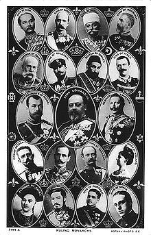 Postcard of ruling monarchs, taken in 1908 between February (accession of King Manuel II of Portugal) and November (death of Guangxu Emperor).