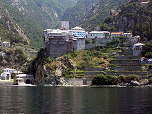 Great Schema (Greek: Megaloschemos, Slavonic: Skhimnik)—Monks whose abbot feels they have reached a high level of spiritual excellence reach the final stage, called the Great Schema. The tonsure of a Schemamonk follows the same format as the Stavrophore, and he makes the same vows and is tonsured in the same manner. But in addition to all the garments worn by the Stavrophore, he is given the Analavos (Slavonic: Analav) which is the article of monastic vesture emblematic of the Great Schema. For this reason, the analavos itself is sometimes called the "Great Schema". The analavos comes down in the front and the back, somewhat like the scapular in Western monasticism, although the two garments are probably not related. It is often intricately embroidered with the instruments of the Passion and the Trisagion (the angelic hymn). The Greek form does not have a hood, the Slavic form has a hood and lappets on the shoulders, so that the garment forms a large cross covering the monk's shoulders, chest, and back. Another piece added is the Polystavrion or "Many Crosses", which consists of a cord with a number of small crosses plaited into it. The polystavrion forms a yoke around the monk and serves to hold the analavos in place, and reminds the monastic that he is bound to Christ and that his arms are no longer fit for worldly activities, but that he must labor only for the Kingdom of Heaven. Among the Greeks, the mantle is added at this stage. The paramandyas of the Megaloschemos is larger than that of the Stavrophore, and if he wears the klobuk, it is of a distinctive thimble shape, called a koukoulion, the veil of which is usually embroidered with crosses. In some monastic traditions the Great Schema is only given to monks and nuns on their death bed, while in others they may be elevated after as little as 25 years of service.