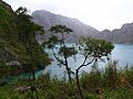 After eruptions ended, a crater lake formed in the 1991 caldera, with the 1992 lava dome forming an island. At first, the lake was small, hot and highly acidic, with a minimum pH of 2 and a temperature of about 40 °C. Abundant rainfall cooled and diluted the lake, lowering the temperature to 26 °C and raising the pH to 5.5 by 2003.