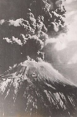 From January 6, 1944 to February 23, 1944, there appeared lava flows within the rim and there were outflows. The activity paused on February 23 and resumed on March 13. Since then small explosions occurred until the major explosion took place on March 18, 1944. The eruption could be seen from Naples and several photos have been taken.