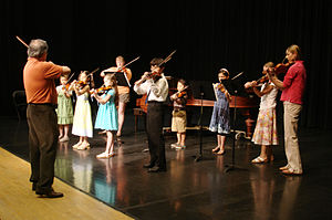 The incorporation of music training from preschool to post secondary education is common in North America and Europe. Involvement in music is thought to teach basic skills such as concentration, counting, listening, and cooperation while also promoting understanding of language, improving the ability to recall information, and creating an environment more conducive to learning in other areas. In elementary schools, children often learn to play instruments such as the recorder, sing in small choirs, and learn about the history of Western art music. In secondary schools students may have the opportunity to perform some type of musical ensembles, such as choirs, marching bands, concert bands, jazz bands, or orchestras, and in some school systems, music classes may be available. Some students also take private music lessons with a teacher. Amateur musicians typically take lessons to learn musical rudiments and beginner- to intermediate-level musical techniques.