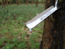 Natural rubber, also called India rubber or caoutchouc, as initially produced, consists of suitable polymers of the organic compound isoprene with minor impurities of other organic compounds plus water. Forms of polyisoprene that are useful as natural rubbers are classified as elastomers. Currently the rubber is harvested mainly in the form of the latex from certain trees. The latex is a sticky, milky colloid drawn off by making incisions into the bark and collecting the fluid in vessels. This process is called "tapping". The latex then is refined into rubber ready for commercial processing. Natural rubber is used extensively in many applications and products, either alone or in combination with other materials. In most of its useful forms it has a large stretch ratio, high resilience, and is extremely waterproof.