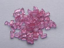 Neodymium is typically 10% to 18% of the rare earth content of commercial deposits of the light rare earth element minerals bastnasite and monazite. With neodymium compounds being the most strongly colored for the trivalent lanthanides, that percentage of neodymium can occasionally dominate the coloration of rare earth minerals—when competing chromophores are absent. It usually gives a pink coloration. Outstanding examples of this include monazite crystals from the tin deposits in Llallagua, Bolivia, ancylite from Mont Saint-Hilaire, Quebec, or lanthanite from the Saucon Valley, Pennsylvania. As with neodymium glasses, such minerals change their colors under the differing lighting conditions. The absorption bands of neodymium interact with the visible emission spectrum of mercury vapor, with the unfiltered shortwave UV light causing neodymium-containing minerals to reflect a distinctive green colour. This can be observed with monazite-containing sands or bastnasite-containing ore.