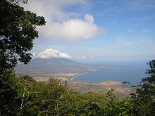 Nicaragua (AmE / ˌ n ɪ k ə ˈ r ɑː ɡ w ə / nik-ə-RAH-gwə, BrE / ˌ n ɪ k ə ˈ r æ ɡ j uː ə / nik-ə-RAG-yoo-ə), officially the Republic of Nicaragua (Spanish: República de Nicaragua [reˈpuβlika ðe nikaˈɾaɣwa]), is the largest country in the Central American isthmus, bordering Honduras to the north and Costa Rica to the south. The country is situated between 11 and 14 degrees north of the Equator in the Northern Hemisphere, which places it entirely within the tropics. The Pacific Ocean lies to the west, and the Caribbean Sea to the east. The country's physical geography divides it into three major zones: Pacific lowlands; wet, cooler central highlands; and the Caribbean lowlands. On the Pacific side of the country are the two largest fresh water lakes in Central America— Lake Managua and Lake Nicaragua. Surrounding these lakes and extending to their northwest along the rift valley of the Gulf of Fonseca are fertile lowland plains, with soil highly enriched by ash from nearby volcanoes of the central highlands. Nicaragua's abundance of biologically significant and unique ecosystems contribute to Mesoamerica's designation as a biodiversity hotspot.