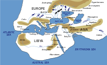 Reconstruction of the Oikoumene (inhabited world), an ancient map based on Herodotus' description of the world, circa 450 BC.
