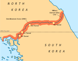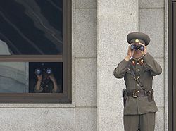 Two of the few ways to enter North Korea are over the Sino-Korea Friendship Bridge or via Panmunjeom, the former crossing the Amnok River and the latter crossing the Demilitarized Zone.