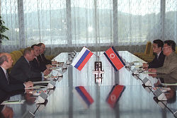 | b. | ^ Kim Yong-nam is the " head of state for foreign affairs". The position of president (formerly head of state) was written out of the constitution in 1998. Kim Il-sung, who died in 1994, was given the appellation " Eternal President" in its preamble. | |||||