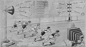 Thomas Hicks running the marathon at the 1904 Summer Olympics.