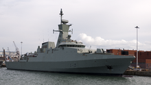 The Royal Navy of Oman had 4,200 men in 2000, and is headquartered at Seeb. It has bases at Ahwi, Ghanam Island, Mussandam and Salalah. In 2006, Oman had 10 surface combat vessels. These included two 1,450-ton Qahir class corvettes, and 8 ocean-going patrol boats. The Omani Navy had one 2,500-ton Nasr al Bahr class LSL (240 troops, 7 tanks) with a helicopter deck. Oman also had at least four landing craft. Oman ordered three Khareef-class corvettes from the VT Group for £400 million in 2007. They are being built at Portsmouth.