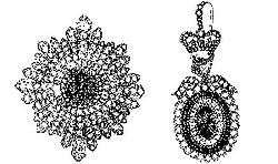 The Grand Master's insignia were of the same form and design as those of the Knights. In 1831, however, William IV presented the Grand Master with a star and badge, each composed of rubies, emeralds and Brazilian diamonds. These two insignia became known as the Irish Crown Jewels. They, along with five collars belonging to Knights, were famously stolen in 1907; they have not since been recovered.