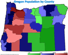 The centre of population of Oregon is located in Linn County, in the city of Lyons. More than 57% of the state's population lives in the Portland metropolitan area.