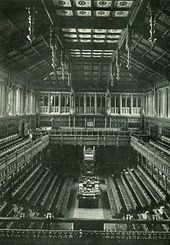 The old chamber of the House of Commons was in use between 1852 and 1941, when it was destroyed by German bombs in the course of the Second World War.