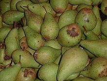 The culinary or cooking pear is green but dry and hard, and only edible after several hours of cooking. Two Dutch cultivars are "Gieser Wildeman" (a sweet variety) and "Saint Remy" (slightly sour).