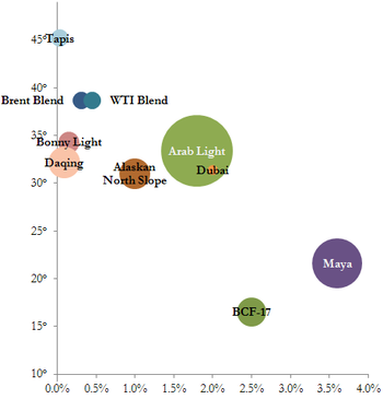 - Minas (from Indonesia, used as a reference for heavy Far East oil)