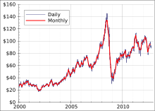 In the 1950s, shipping costs made up 33 per cent of the price of oil transported from the Persian Gulf to USA, but due to the development of supertankers in the 1970s, the cost of shipping dropped to only 5 per cent of the price of Persian oil in USA. Due to the increase of the value of the crude oil during the last 30 years, the share of the shipping cost on the final cost of the delivered commodity was less than 3% in 2010. For example, in 2010 the shipping cost from the Persian Gulf to the USA was in the range of 20 $/t and the cost of the delivered crude oil around 800 $/t.