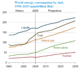 Consumption in the twentieth and twenty-first centuries has been abundantly pushed by automobile growth; the 1985–2003 oil glut even fueled the sales of low economy vehicles in OECD countries. In 2008, the economic crisis seems to have some impact on the sales of such vehicles; still, the 2008 oil consumption shows a small increase. The BRIC countries might also kick in, as China briefly was the first automobile market in December 2009. The immediate outlook still hints upwards. In the long term, uncertainties linger; the OPEC believes that the OECD countries will push low consumption policies at some point in the future; when that happens, it will definitely curb oil sales, and both OPEC and EIA kept lowering their 2020 consumption estimates during the past 5 years. Oil products are more and more in competition with alternative sources, mainly coal and natural gas, both cheaper sources.