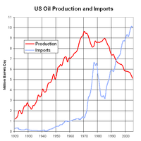 Hubbert applied his theory to accurately predict the peak of U.S. oil production at a date between 1966 and 1970. This prediction was based on data available at the time of his publication in 1956. In the same paper, Hubbert predicts world peak oil in "half a century" after his publication, which would be 2006.
