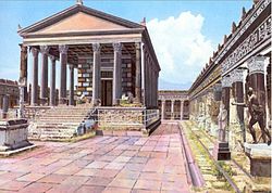 Illustrated reconstruction, from a CyArk/ University of Ferrara research partnership, of how the Temple of Apollo may have looked before Mt. Vesuvius erupted