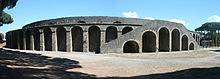 In 89 BC, after the final occupation of the city by Roman General Lucius Cornelius Sulla, Pompeii was finally annexed to the Roman Republic. During this period, Pompeii underwent a vast process of infrastructural development, most of which was built during the Augustan period. These include an amphitheatre, a palaestra with a central natatorium or swimming pool, and an aqueduct that provided water for more than 25 street fountains, at least four public baths, and a large number of private houses ( domūs) and businesses. The amphitheatre has been cited by modern scholars as a model of sophisticated design, particularly in the area of crowd control.