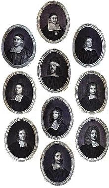 Gallery of famous 17th-century Puritan theologians: Thomas Gouge, William Bridge, Thomas Manton, John Flavel, Richard Sibbes, Stephen Charnock, William Bates, John Owen, John Howe, Richard Baxter.