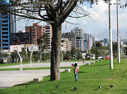 La Carolina is a 165.5-acre (670,000 m²) park in the centre of the Quito main business area, bordered by the avenues Río Amazonas, de los Shyris, Naciones Unidas, Eloy Alfaro, and de la República. This park started from the expropriation of the farm La Carolina in 1939. The design of the park was made by the Dirección Metropolitana de Planificación Territorial (DMPT). Pope John Paul II headed a great mass in the park during his visit to Ecuador in 1985. A giant cross has been built in this place.
