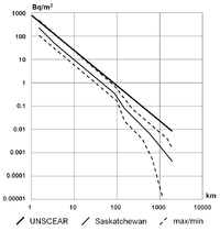 1,000,000 27000 Concentrations reaching 1,000,000 Bq/m3 can be found in unventilated uranium mines.