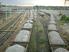 Bulk handling represents a key advantage for rail transport. Low or even zero transshipment costs combined with energy efficiency and low inventory costs allow trains to handle bulk much cheaper than by road. Typical bulk cargo includes coal, ore, grains and liquids. Bulk is transported in open-topped cars, hopper cars and tank cars.