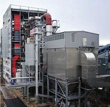 A cogeneration plant in Metz, France. The station uses waste wood biomass as energy source, and provides electricity and heat for 30,000 dwellings.