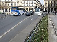 Tram and streetcar systems generally follow the same rules as normal road traffic in the country concerned, both on road and on reserved sections, with the passenger doors on the kerbside. Various exceptions exist or have existed, examples including the now-removed system in London where some sections of tramway had both tracks on the same side of the road with no physical separation from road traffic.