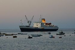 Saint Helena is one of the most remote islands in the world, currently has no commercial airports, and travel to the island is by ship only. A large military airfield is located on Ascension Island, with two Friday flights to RAF Brize Norton, England (as from September 2010). These RAF flights offer a limited number of seats to civilians. The ship RMS Saint Helena runs between St Helena and Cape Town, also visiting Ascension Island and Walvis Bay, and occasionally voyaging north to Tenerife and Portland, UK. It berths in James Bay, St Helena approximately thirty times per year. The RMS Saint Helena was due for decommissioning in 2010, however its service life has been extended indefinitely until the airstrip is completed.