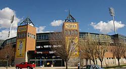 There are also two minor league teams located in the city. The Salt Lake Bees, a Pacific Coast League Triple A affiliate of the Los Angeles Angels of Anaheim, play at Spring Mobile Ballpark and were established in 1994 as the Buzz. Their name was changed to the Stingers in 2002 and to the Bees, a historical Salt Lake City baseball team name, in 2006. The Utah Grizzlies hockey team of the ECHL were established in 2005, replacing the previous Grizzlies team that existed from 1995 to 2005 in the IHL and, later, the AHL. They play at the Maverik Centre in neighboring West Valley City.